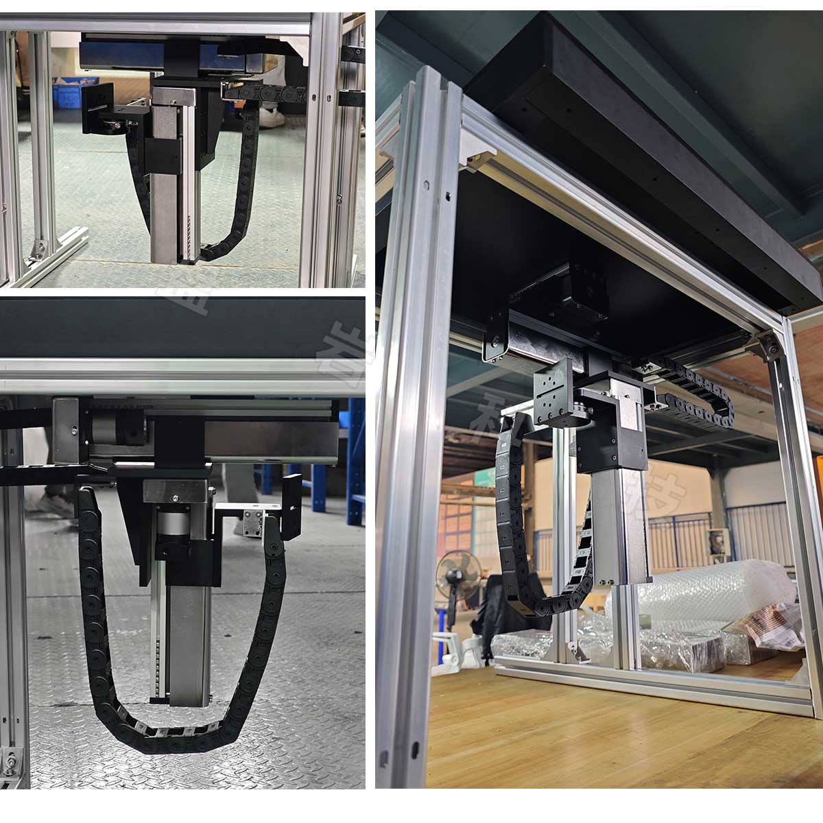 此款为盘岩科技-根据客户需求,设计的一款拍照场景的结构,选用以PKH40和PKH80两款标准丝杆模组为基础,做了盖板升级处理,组合搭建成一个XYZ三轴龙门滑台模组的多轴结构,可实现前后左右上下的移动,铝型架用于支撑整个运动机构,为了保护客户隐私,只展示结构部分,详细参数可咨询客服;盘岩科技-直线模组源头工厂,丝杆、同步带、齿轮齿条系列规格型号多,选择丰富,还可以根据需求-按需定制