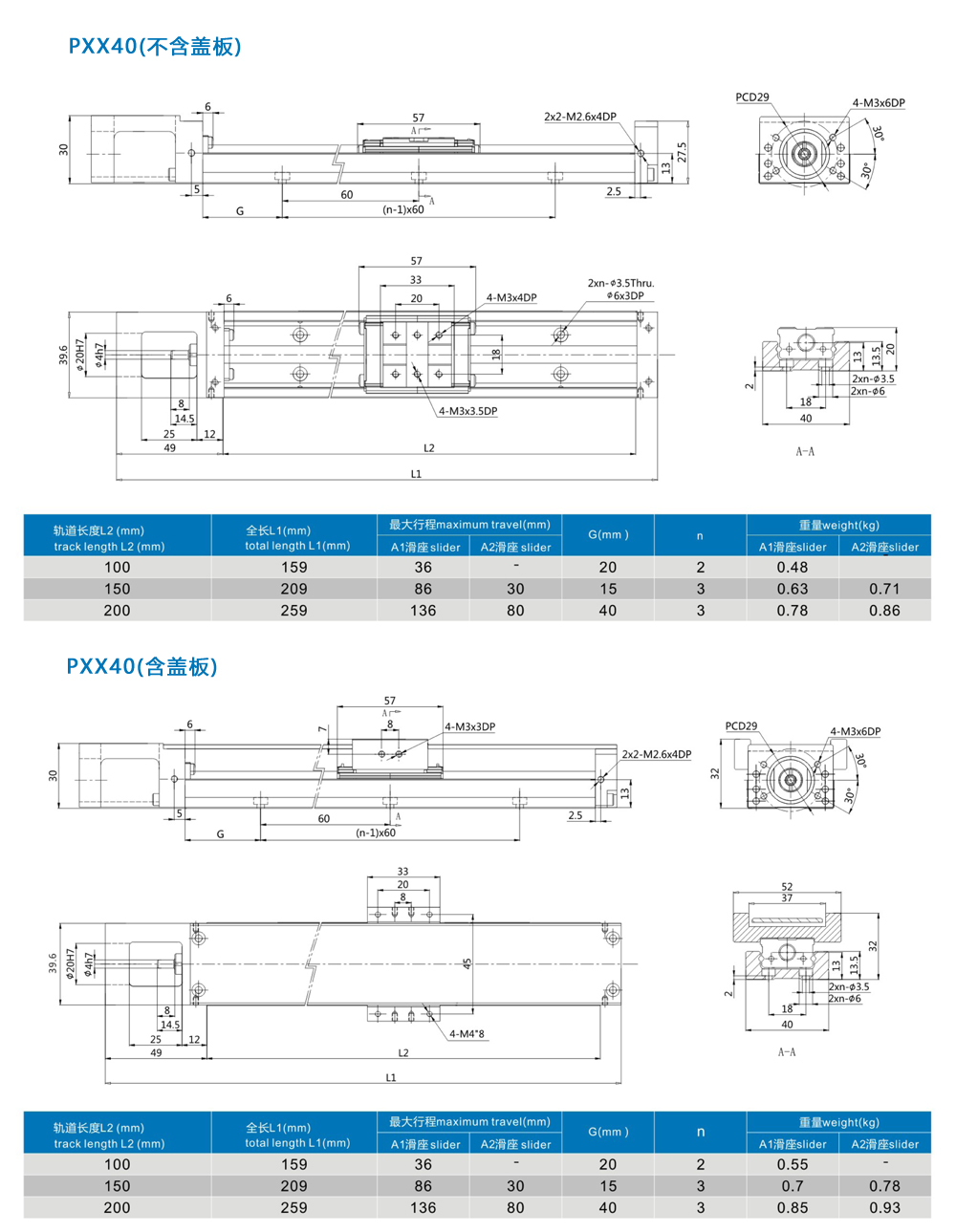 PXX系列主要是透过模组化的的设计,将滚珠丝杆与线性导轨整合在一起,因此可提供具有高精度、快速安装、选用、高刚性、体积小、节省空间等特性,由高精度之滚珠丝杆作为传动机构,以及配合最佳化设计的U型轨道做为导引机构,来确保精度与刚性的需求。