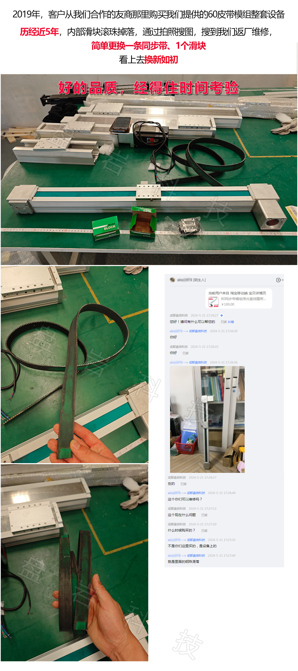 2、厚壁型材,坚固耐用,超长行程,最长可达3.9M(拼接可达20m左右)。