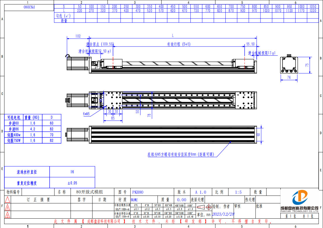 PKH80是盘岩科技一款非常值得推荐的一款双导轨丝杆滑台线性直线模组,此款直线模组性价比高、同系列负载量大、抗震性高、稳定性好、实用性强;本体宽度为80mm,采用静音型滚珠丝杆螺母,2组15mm导轨设计,4滑块,开放式结构,保养更便捷,配6012步进电机,选配伺服电机。可搭建两轴,三轴运动系统运动,方便搭配各行业所需要的工具变成最简单、实用的机械手臂。直线模组单轴以及多轴(整套、非标)定制,咨询热线:19183992731